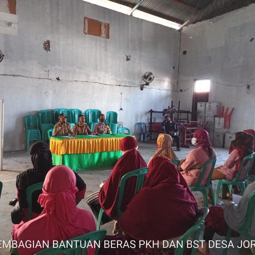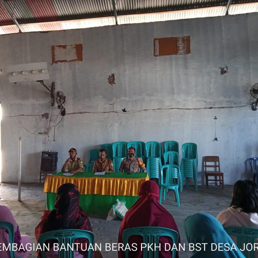 Bantuan awalnya diserahkan secara simbolis diserahkan oleh Kades Jorok Mahruf yang didampingi oleh Sekretaris Desa Jorok Hasanuddin dan Perwakilan Kepala Dusun di Desa Jorok dan kemudian dibagikan satu persatu kepada warga yang menjadi KPM Program Beras PPKM ini. Dalam sambutannya Kades menyampaikan bahwa kegiatan ini merupakan kebijakan dari Pemerintah dengan kebijakan Pemberlakuan Pembatasan Kegiatan Masyarakat (PPKM) Darurat untuk memperketat aktivitas masyarakat untuk mencegah penyebaran covid-19 semakin meluas.